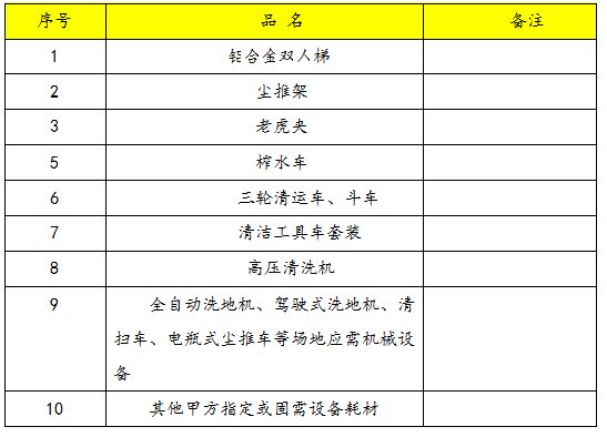 五)、我方提供的保洁服务所需固定资产清单(分摊/月:元)