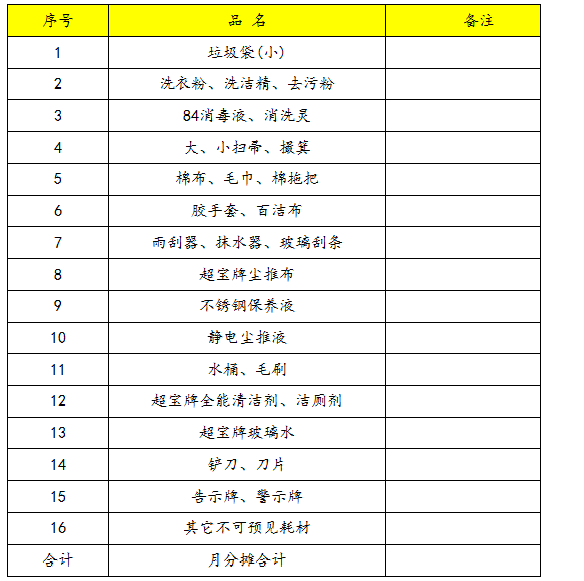 四)我方提供的保洁日常耗材清单(月均耗材:元)